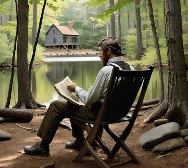 美式小木屋的日常,木頭地板和牆壁,安裝在牆壁上的書架,扶手椅,火爐,直撲的燈罩,和梭羅的時代相比。大約只多了網路吧。在這樣的小木屋裡,我可以待上一輩子……寂寞時,把我所有的前生前世都回憶起來,寫成故事。