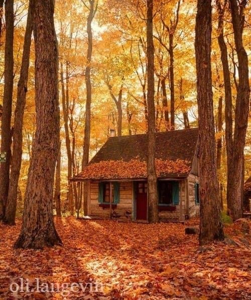 小木屋的四季。住在這樣的屋子裡,在金秋的日子,看著陽光如何改變樹林和木葉的顏色——這樣看上一天,多好呀。要是下雨天,就偎坐在鐵皮爐前,燃起木柴生火。煙霧從煙囪穿出去,瀰漫在樹林裡的樣子,也是感人的。